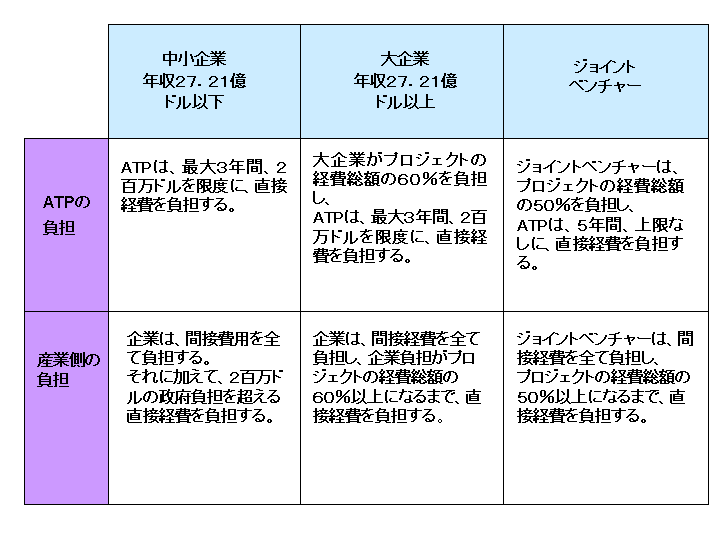 1)ATPの助成は、応募者に応じて以下のように明確に定められている。