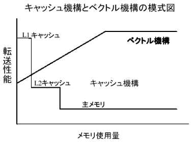 一般的には、キャッシュメモリとベクトルレジスタは異なる性質のものと考えられている。はたして、キャッシュメモリとベクトルレジスタは異なる役割のものであろうか?見方を変えるとキャッシュメモリとベクトルレジスタは同じ目的のためのものである。現在の計算機では、プロセッサの速度とメモリの速度に大きな差がある。キャッシュメモリとベクトルレジスタは、このプロセッサとメモリの速度差を隠蔽するという点でまったく同じ役割を果たしている。