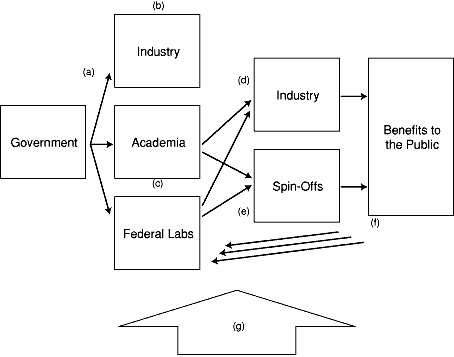 政府による支援は、特定の研究トピックや特定の研究開発段階を対象にした場合ではなく、このフィードバックサイクルを回転させることを狙いとした時に最もその効果を発揮している。