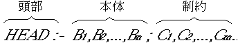 cu−Prologは、ホーン節の拡張である次の制約付ホーン節(CHC) にて記述される。