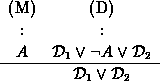 CMGTP はこのような欠点を補うため、MGTP に負アトムを導入し、また、以下 に示すような unit refutation、unit simplificationのメカニズムを導入す ることによって、負の情報による制約伝搬を可能にした。ここで、$M, D$ は それぞれモデル候補集合、モデル拡張候補集合を表す。